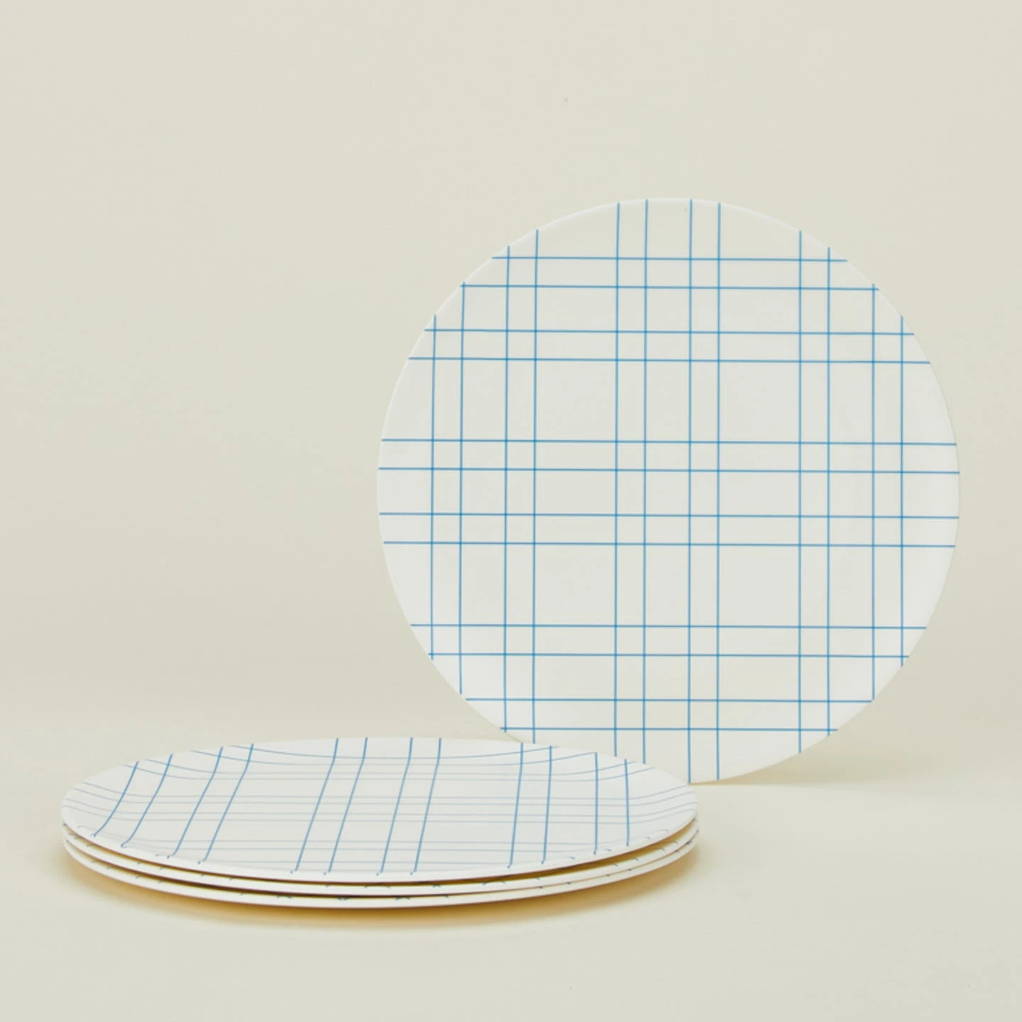 Bamboo Melamine Dinner Plate, Set Of 4 – Blue Plaid