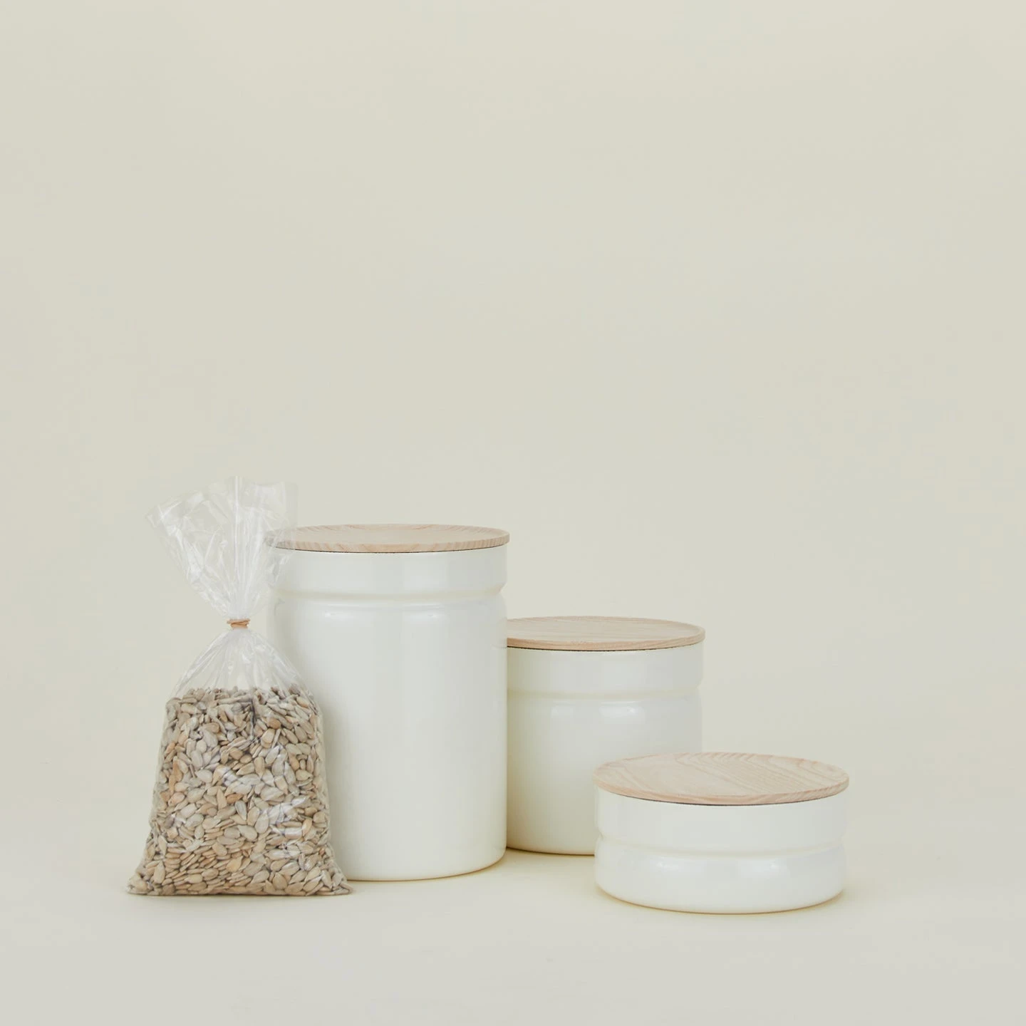 - Stackable, aroma-neutral, + light-protecting storage in the kitchen