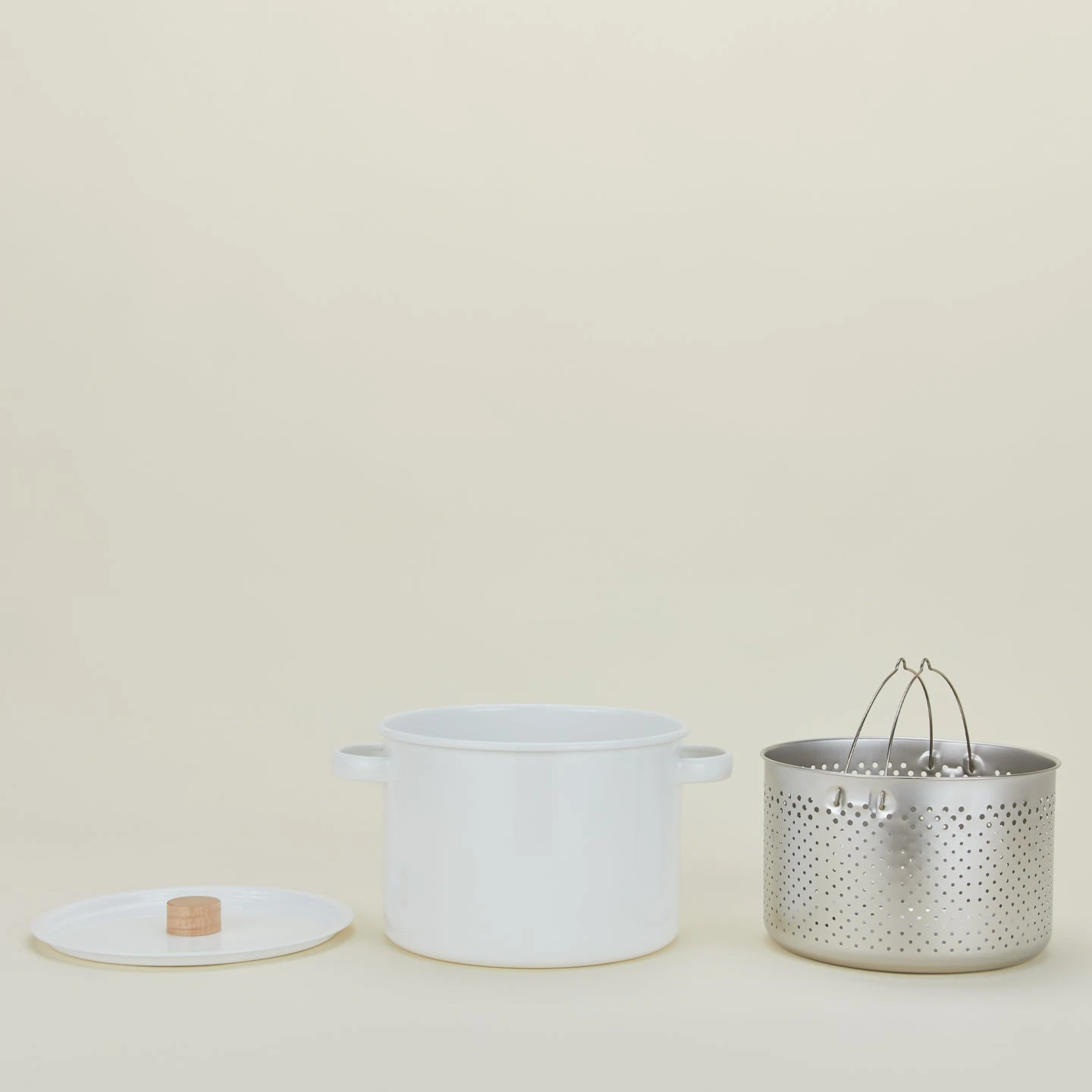 - Clean + timeless pasta pot made of White Japanese enamel