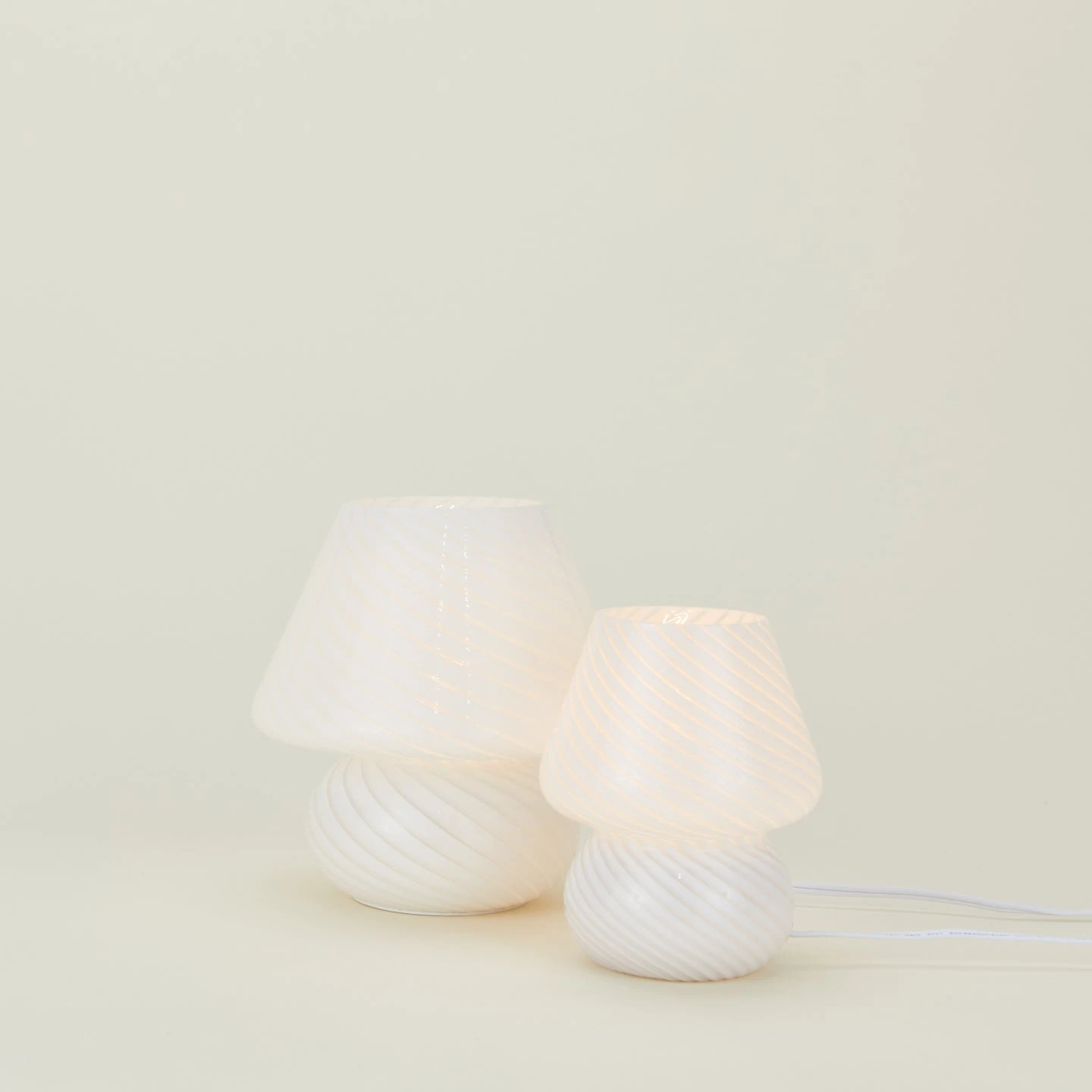 - Hand blown + hand crafted mini glass mushroom lamp in White