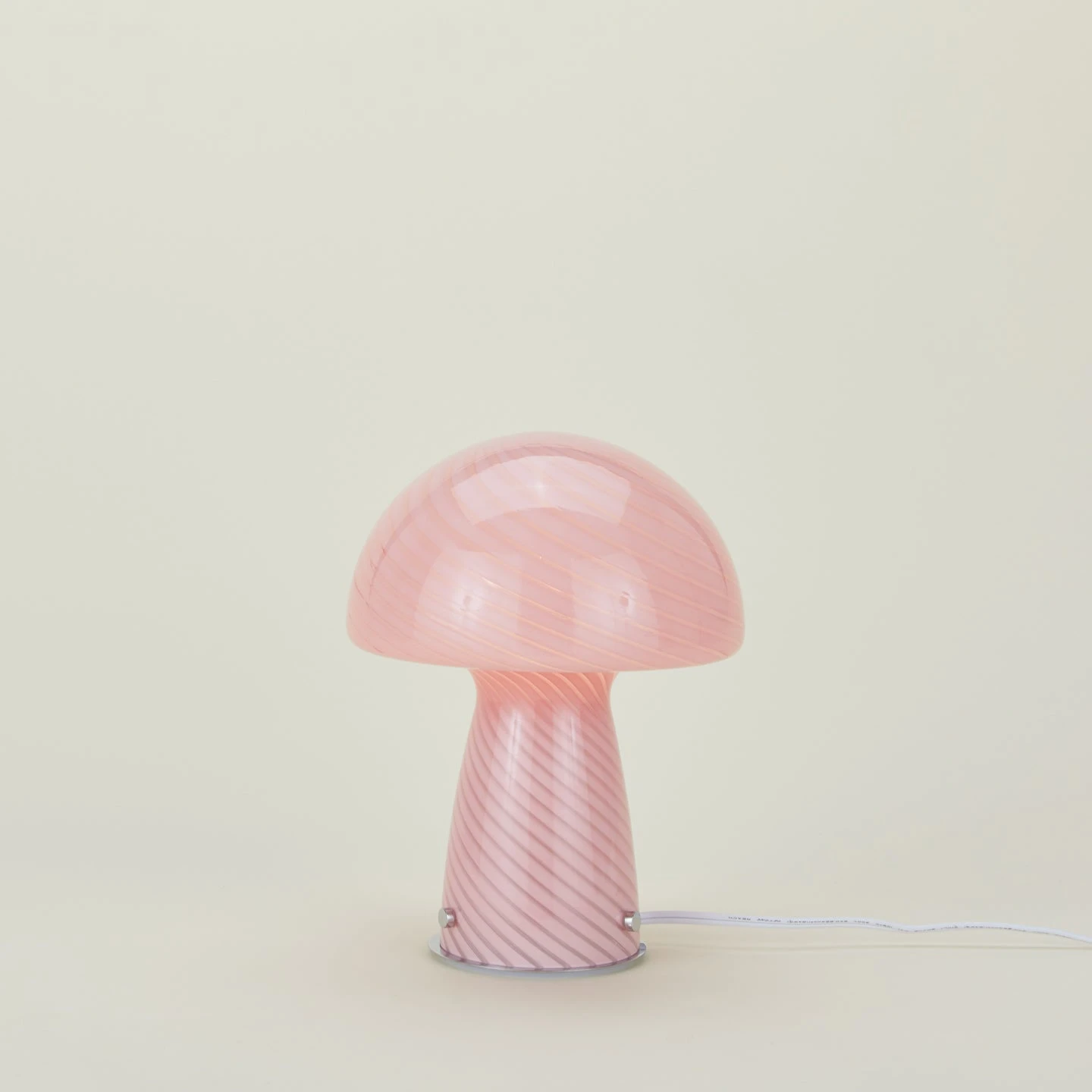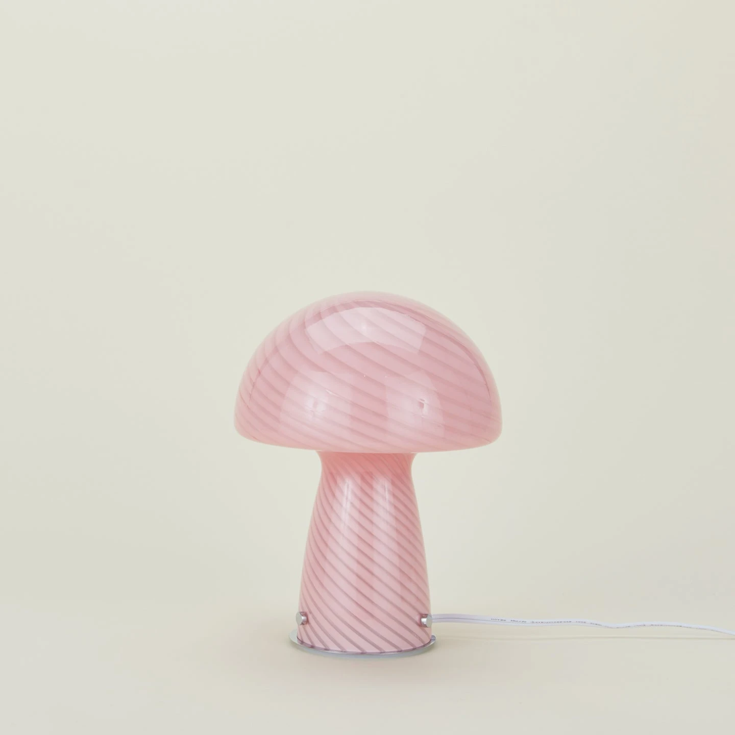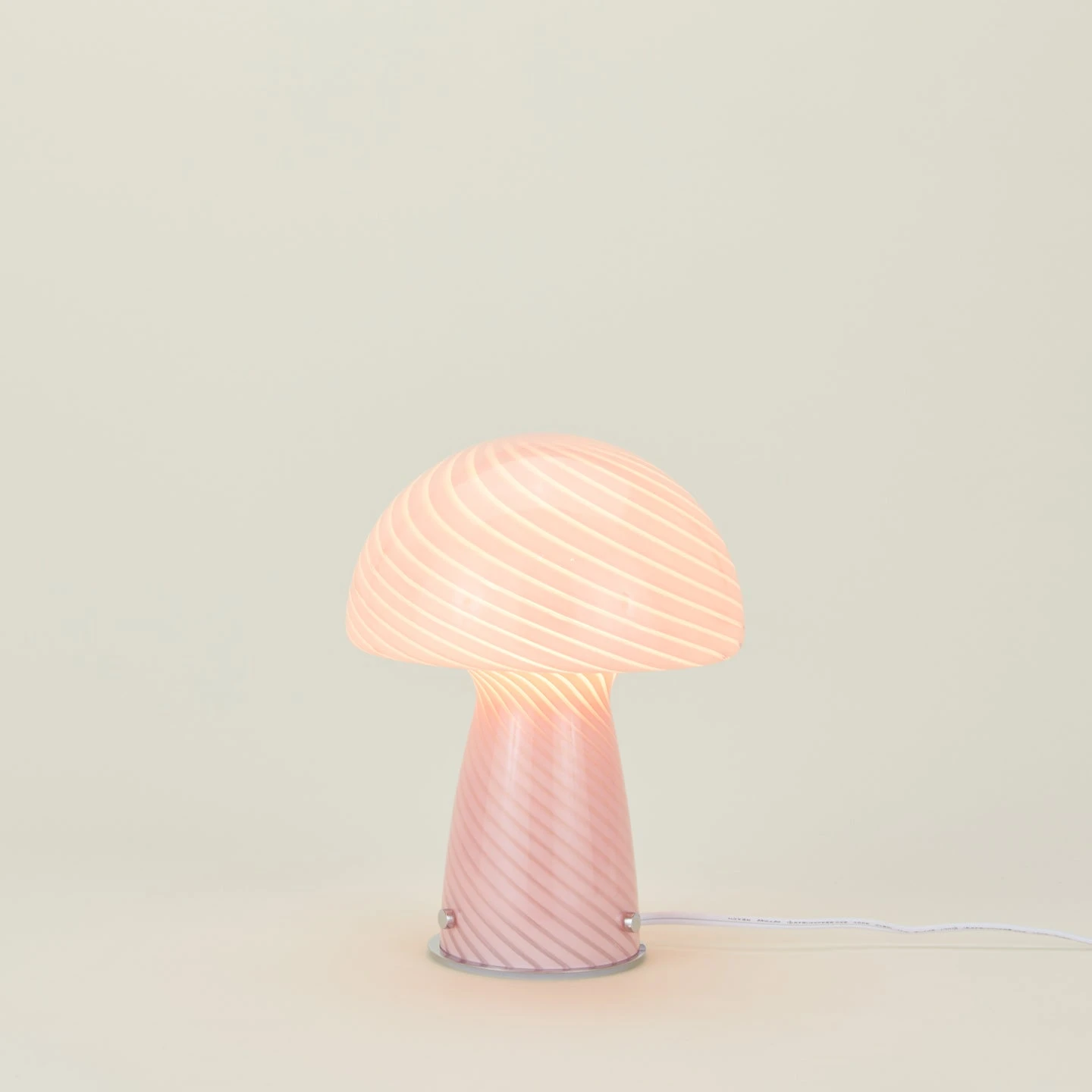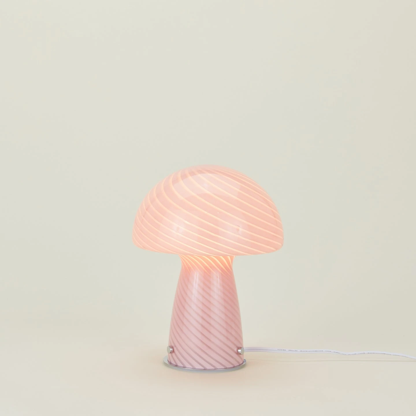 - Hand blown + hand crafted glass mushroom lamp in Pink