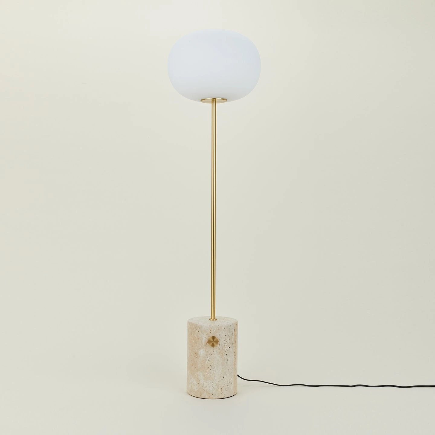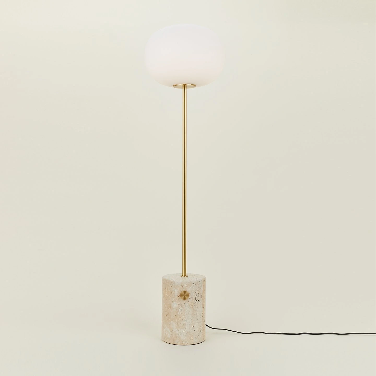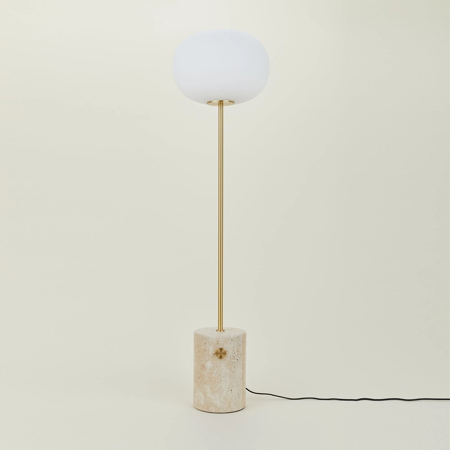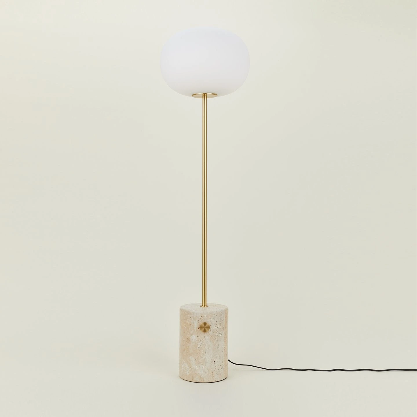 - Concrete + brass designed to look both raw + delicate