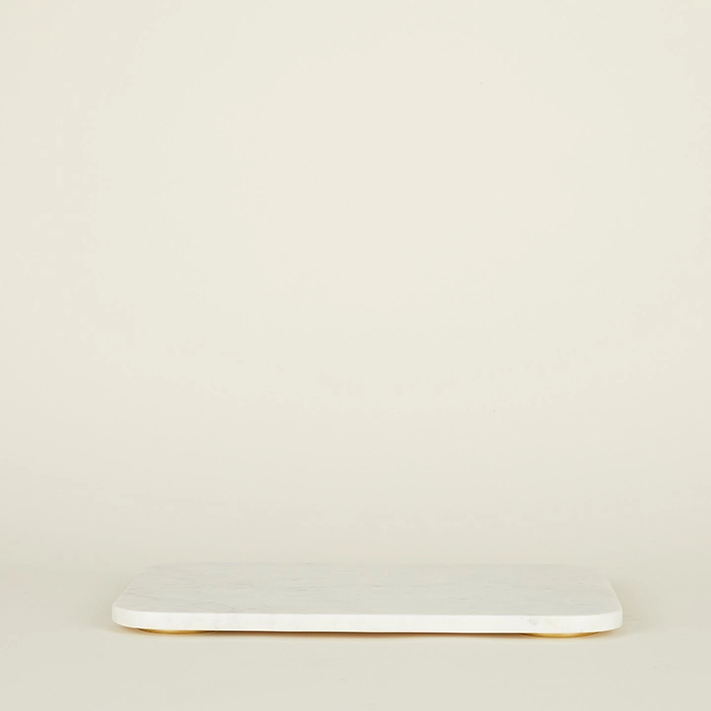 - Constructed of a solid slab of white marble, with rounded corner and circular brass feet